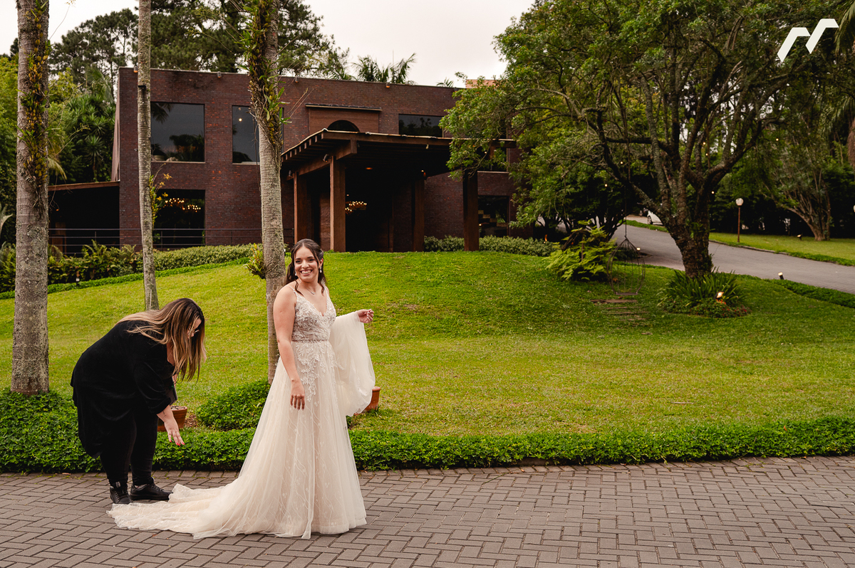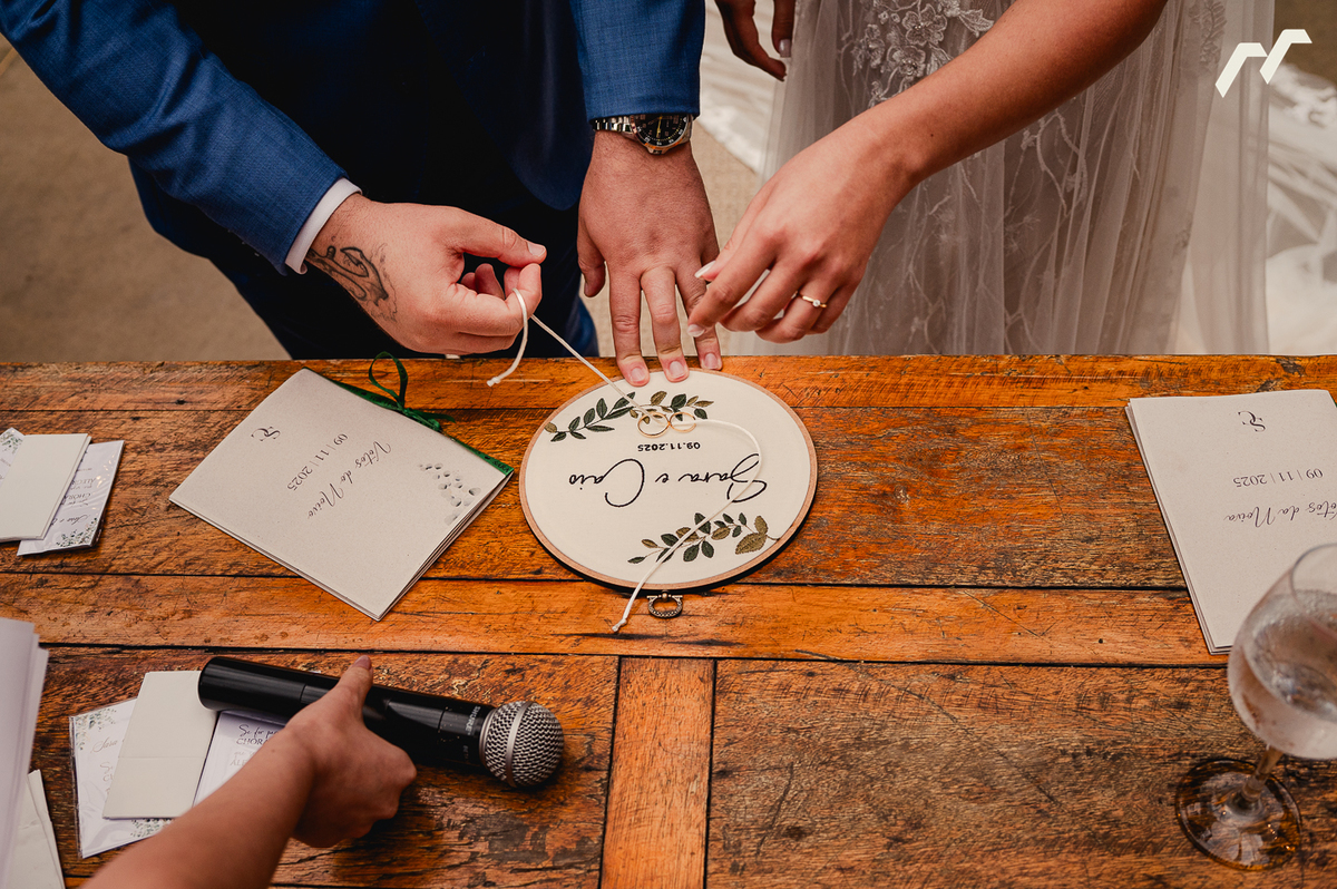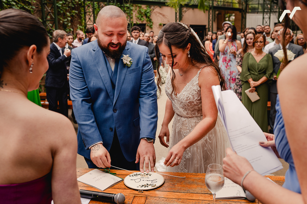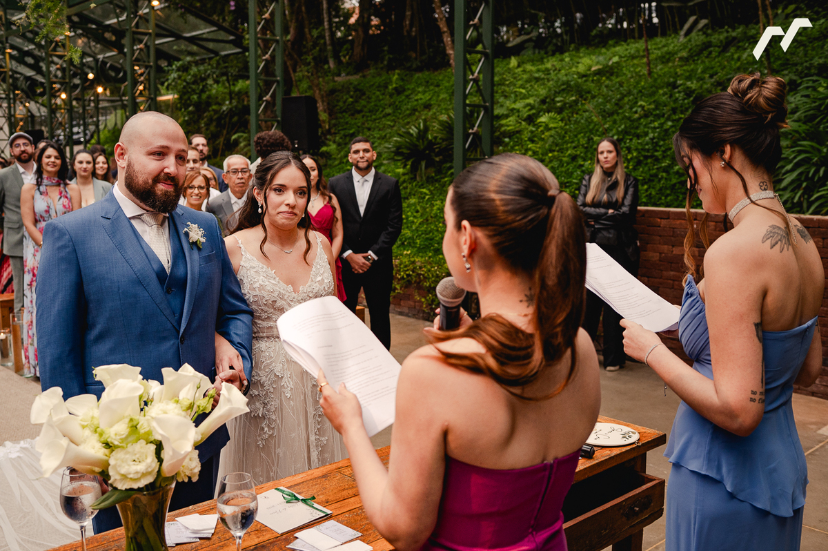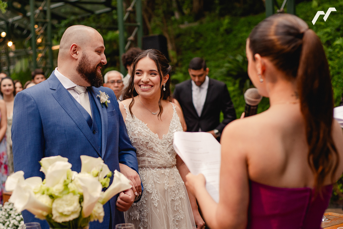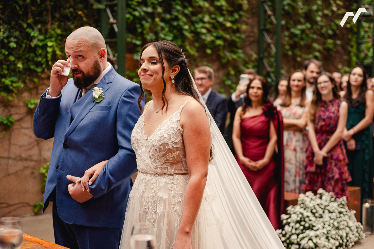 A cerimônia ao ar livre foi marcada por olhares profundos, mãos que se procuravam o tempo todo e sorrisos que revelavam a certeza daquele encontro. Um dia tranquilo, leve e verdadeiro, como essa história merece ser contada. Cheio de pessoas queridas aplaudindo, rindo e chorando junto com Sara e Caio.