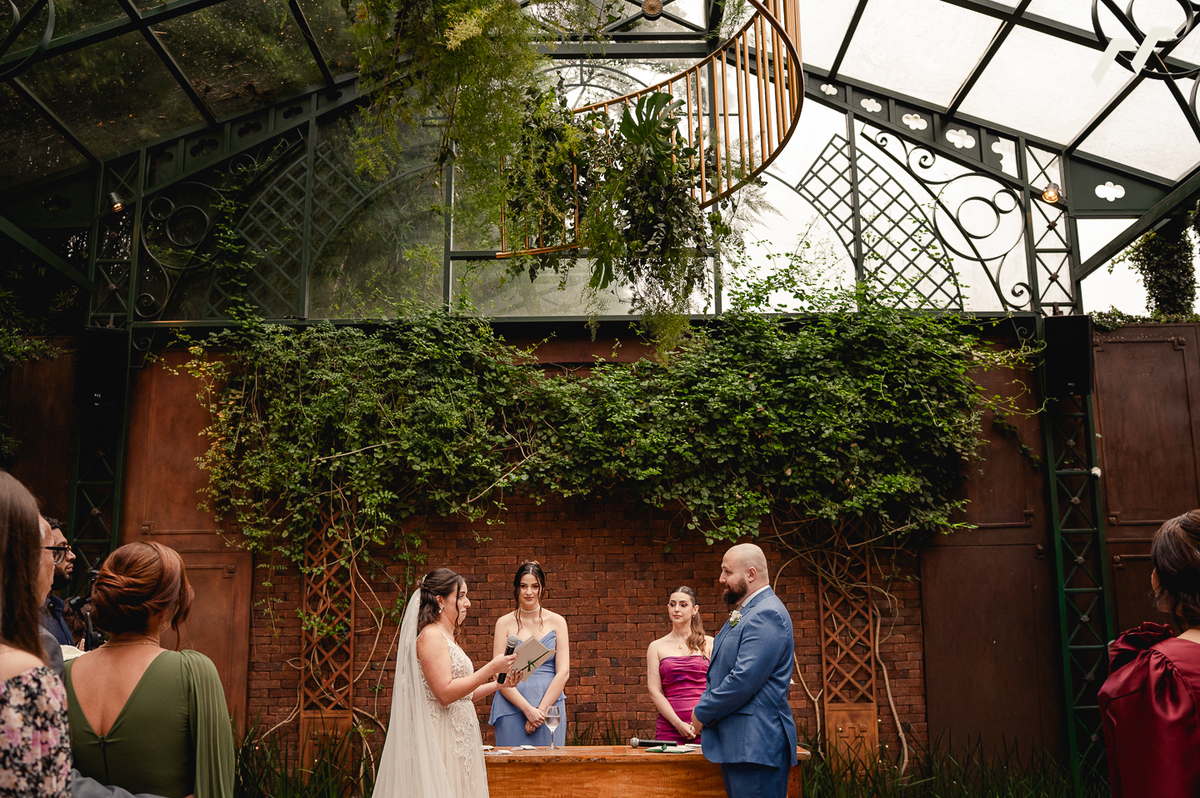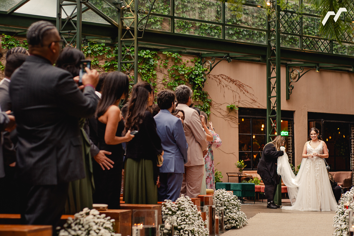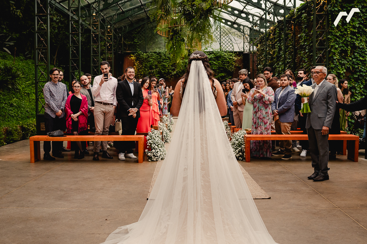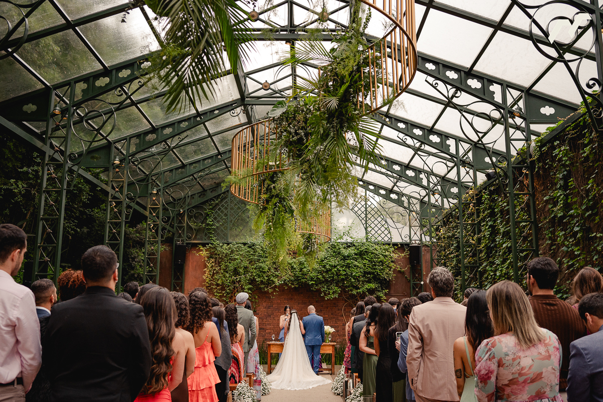 O casamento de Sara e Caio foi daqueles dias que parecem ter sido escritos com calma, como um capítulo importante de uma história que já vinha sendo construída com muito carinho. Cercados pela natureza e pela luz suave que atravessa o teto de vidro do espaço Vdara, no Sítio São Jorge, na cerimônia ganhou uma atmosfera íntima e cheia de significado.