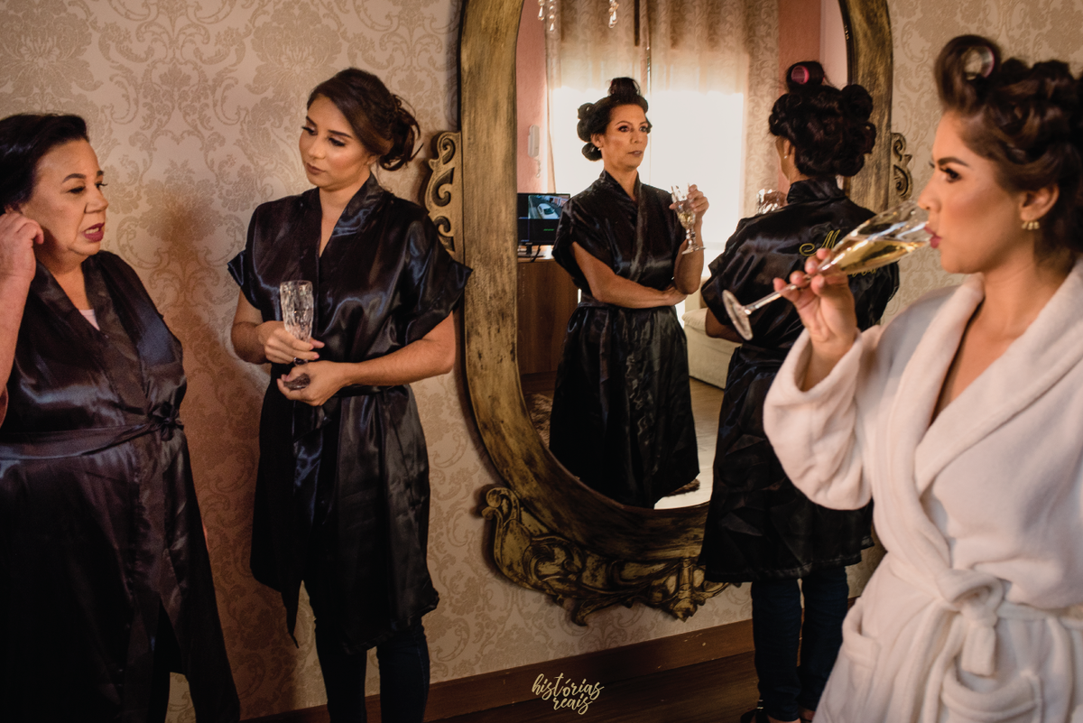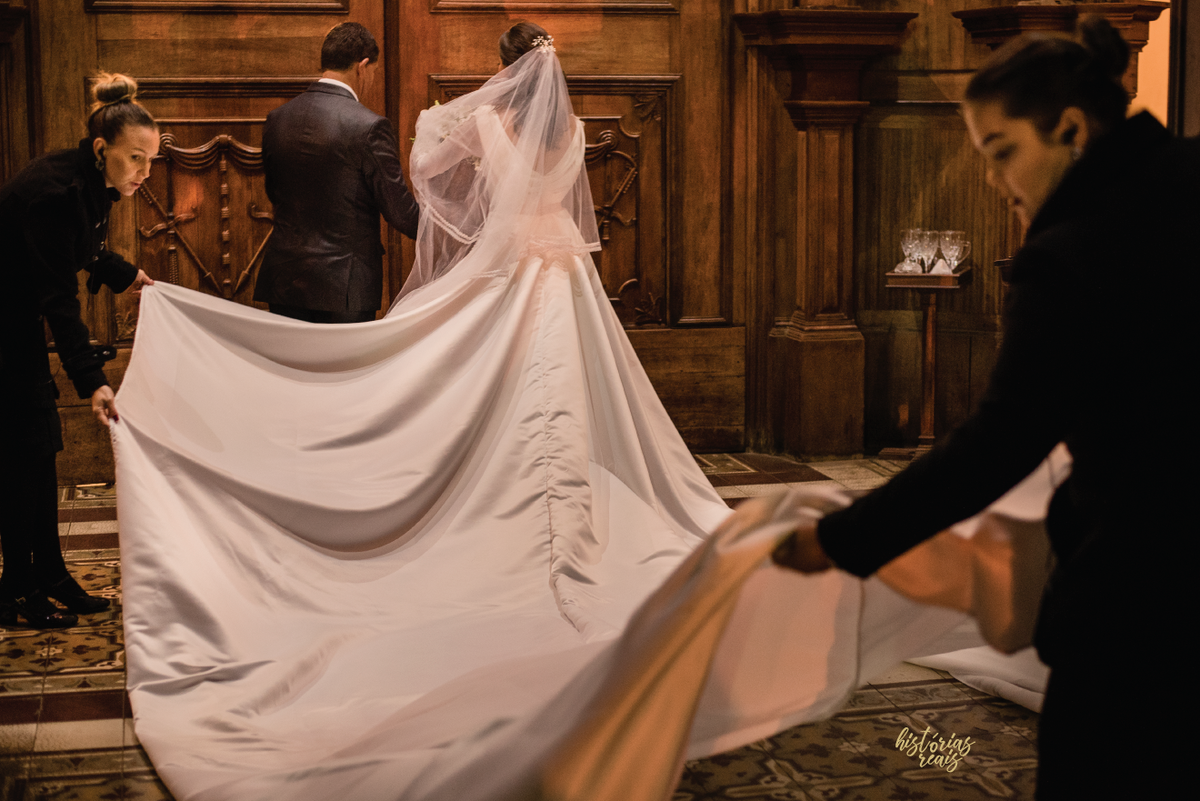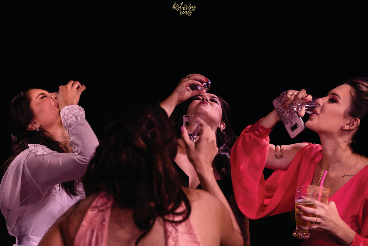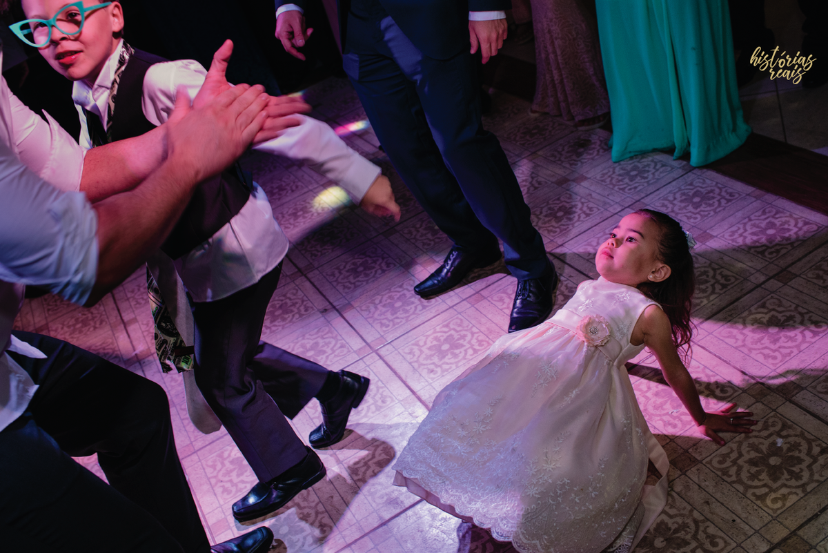 Que tal uma noiva estilista que projetou seu vestido com uma calda de 5 metros? Agora um noivo alto astral que não deixa nada pra depois. Isso somado a um galera insana que quando junta vira festa, daquelas sem hora pra acabar!